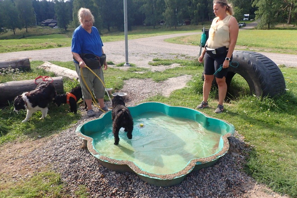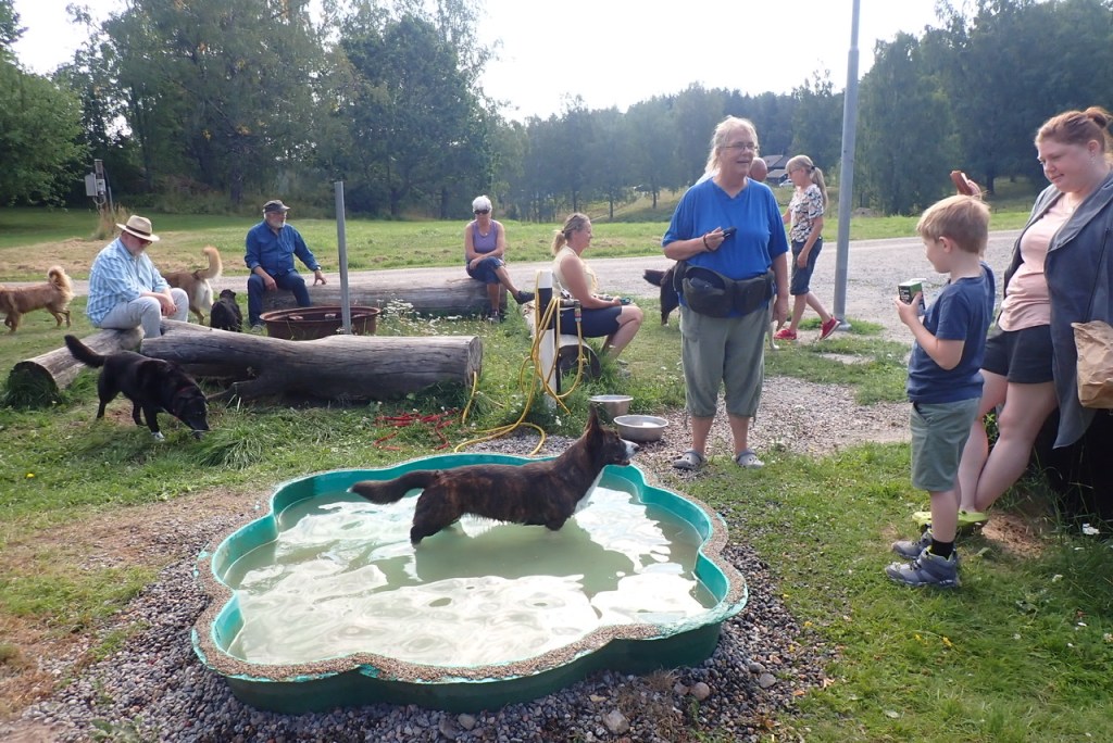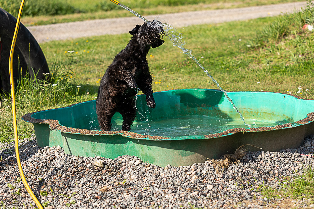 För varmt att göra något speciellt i dag. Vi drar till Klovsten för att slappa lite. M och Helena skall fixa till lite i för helgens hundträffar. Polen tömdes och gjordes ren sen skulle den fyllas med friskt vatten, det börjar bli en fredagsrutin. Troy älskar att leka med vattenstrålen man undrar hur mycket han dricker?