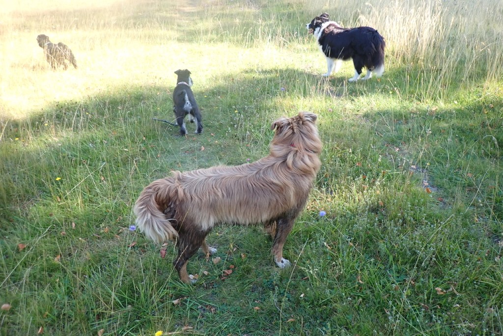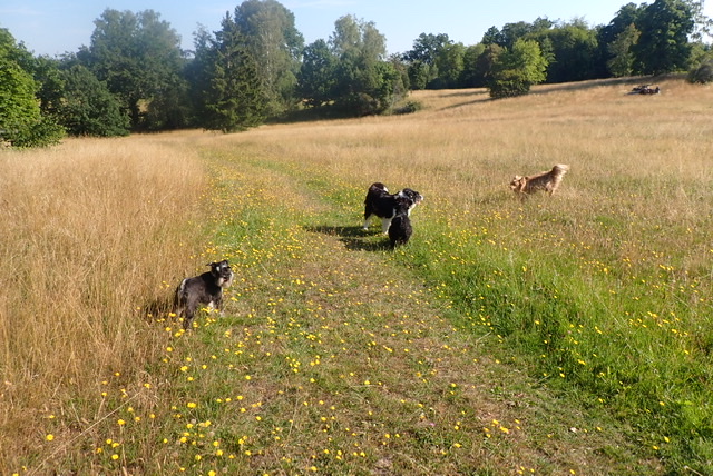 Vi har chattat med Helena och nu är planen så att det att i morgon bär av till kohagen. Vi kunde inte gå där förra året då hagen var full med kor. Vissa av dem gillar inte hundar särskilt inte om de har kalvar så därför stod vi över besöket. Nu verkar hagen vara tom och det växer mycket högt gräs där.
