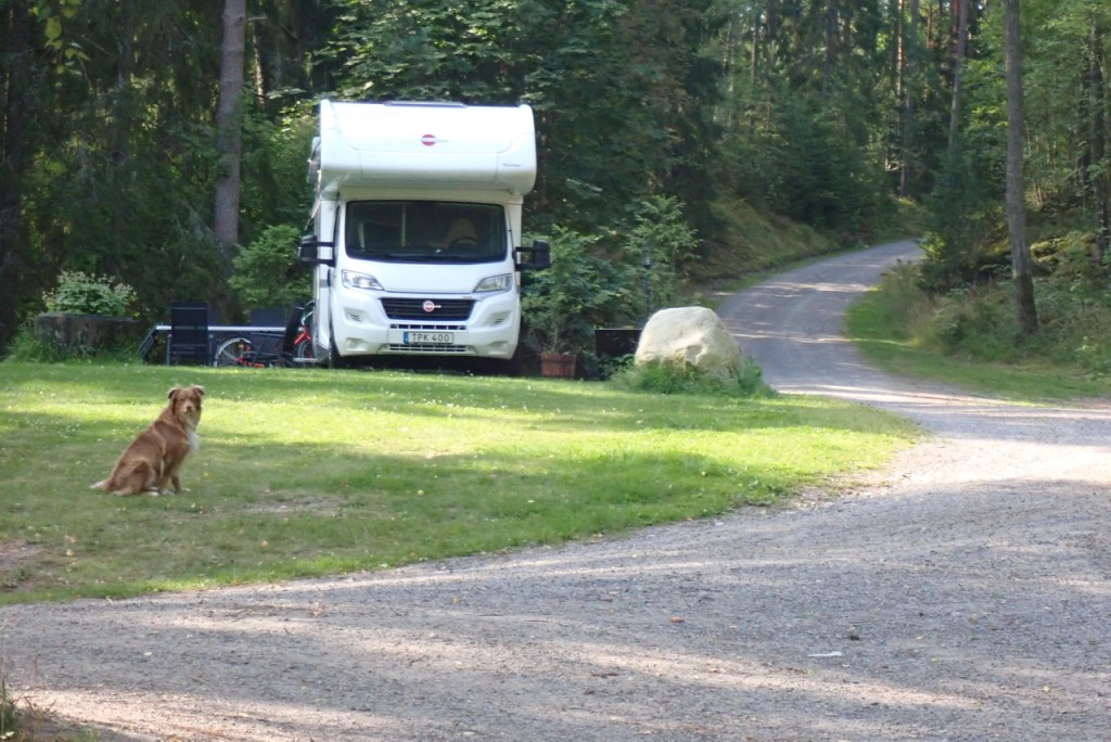 Det var väldigt varmt så jag la mig i skuggan vid rastbordet. Det brukar komma hussar och mattar som slår sig ned där. Då kan man berätta att man minsann aldrig får något godis och att de kan göra en god gärning med att bjuda på lite. Fungerar för det mesta bra! Hundmänniskor har ofta godis i fickorna och kan inte motstå en trånande blick från en svältfödd hund.
