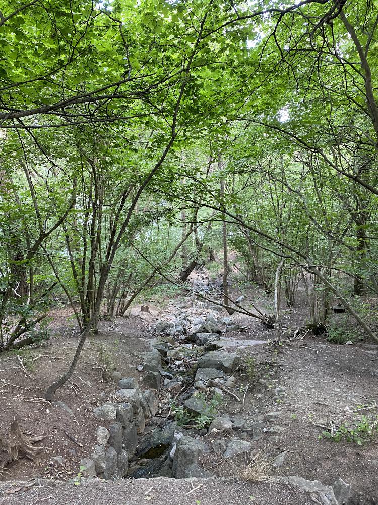 Det finns väldigt fina platser runt där vi bor. Jag tog några bilder, ja jag är inte bara IT- expert jag tar trevliga bilder också. Från vattenreservoaren uppe på Nybohov löper en stensatt fåra ner till sjön Trekanten. Ibland släpper man på vatten från tornet och då blir det som ett litet vattenfall.