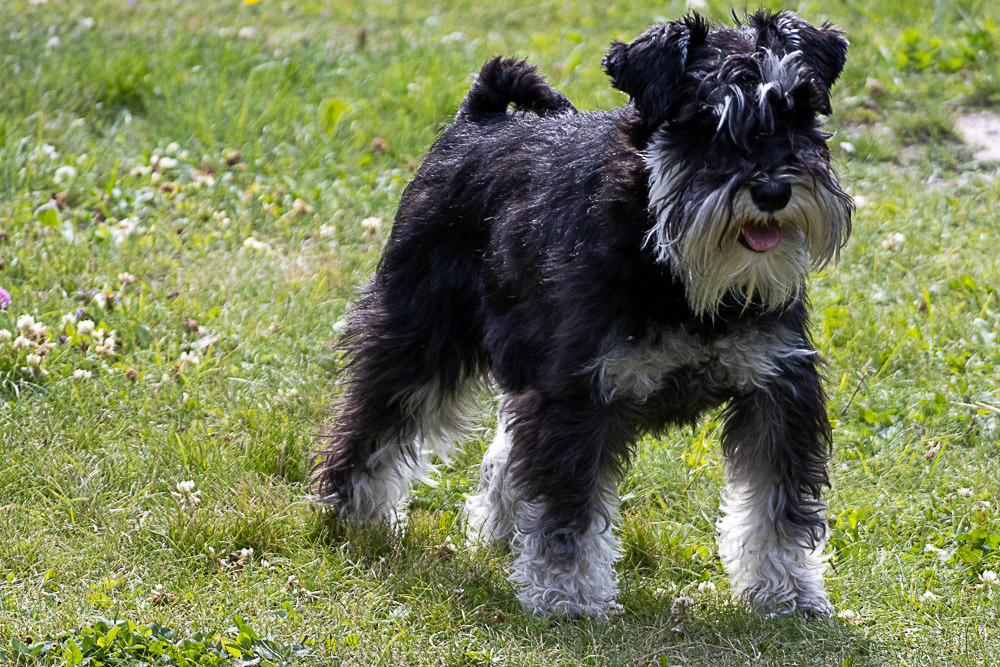 Basse är en miniature american shepherd i en färg men i gänget kallas han för tvåfärgad sörmländsk träskhund.