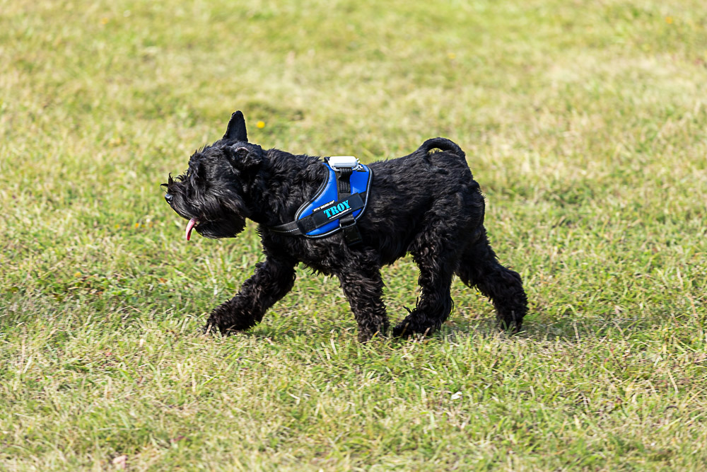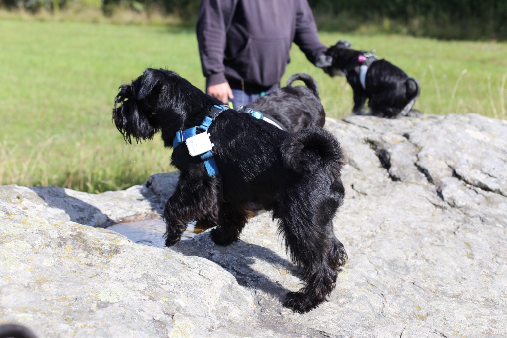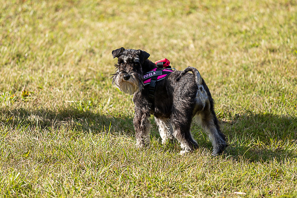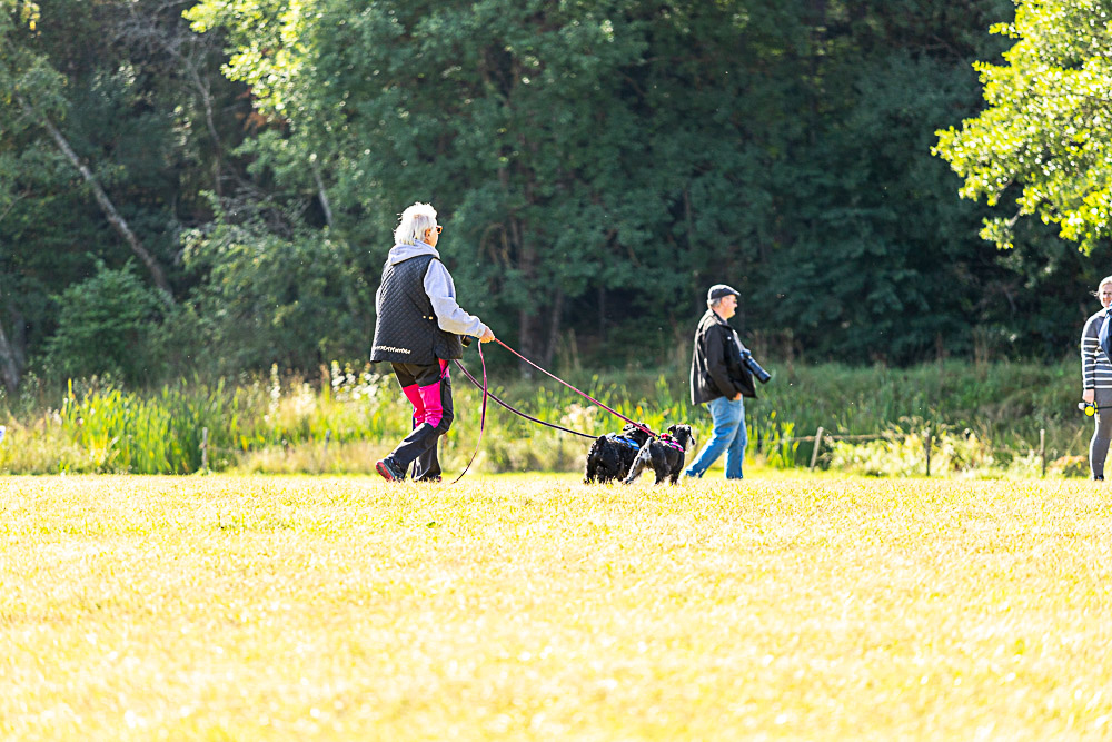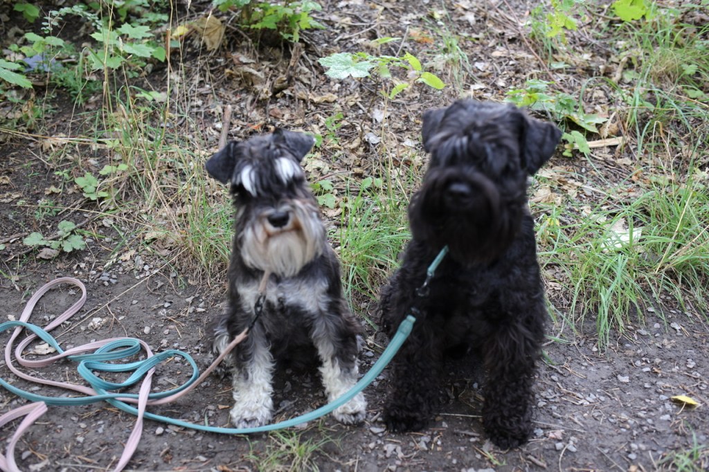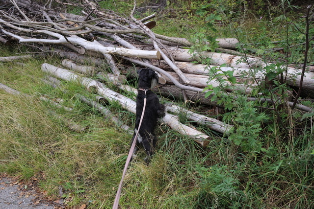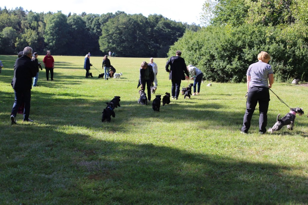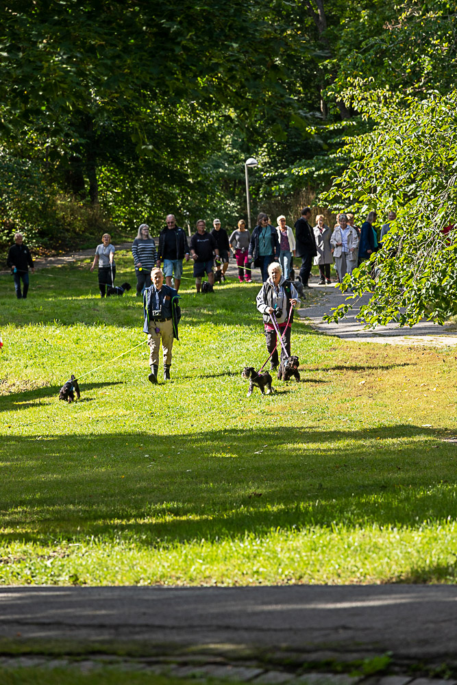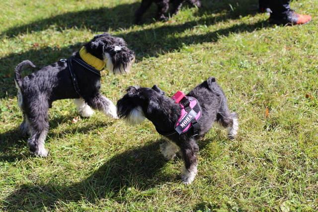 Lördag: Nu är det dags för säsongsstart på Dvärgschnauzerpromenaden vid Åkeshov. Första lördagen i månaden träffas vi kl 11.00. Det var jättelänge sen vi var med och Troys kullbrorsa Dojo var där. Jag håller koll på husse som var med en stund på promenaden