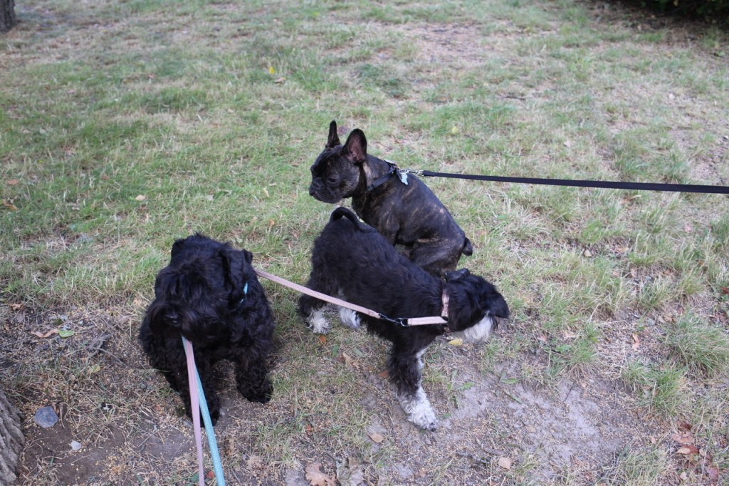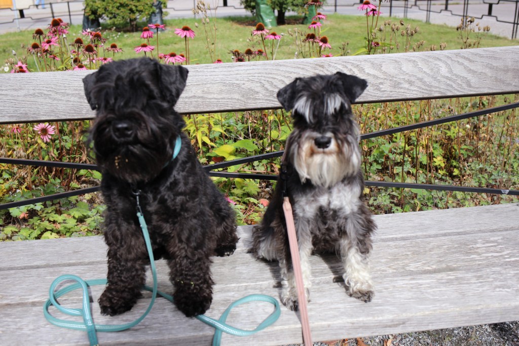 På delar av promenaden går via trånga gångvägar och då får vi gå kopplade. Vi tycker det är tråkigt men inget att göra åt. De vi möter blir lite frågande av att möta så många snuzzar.