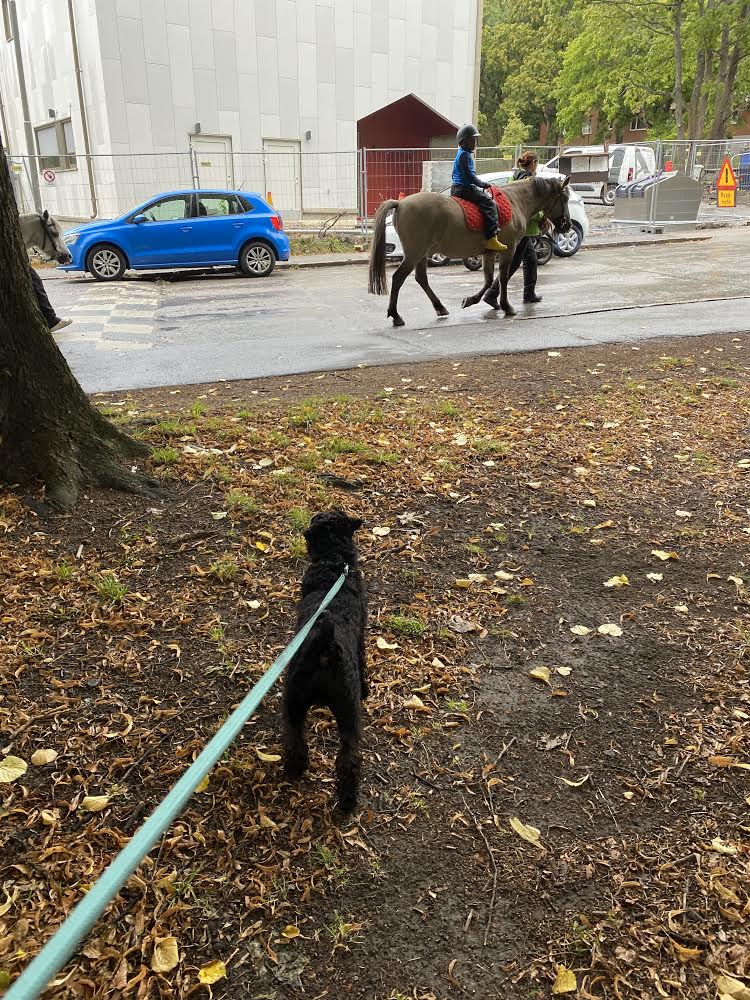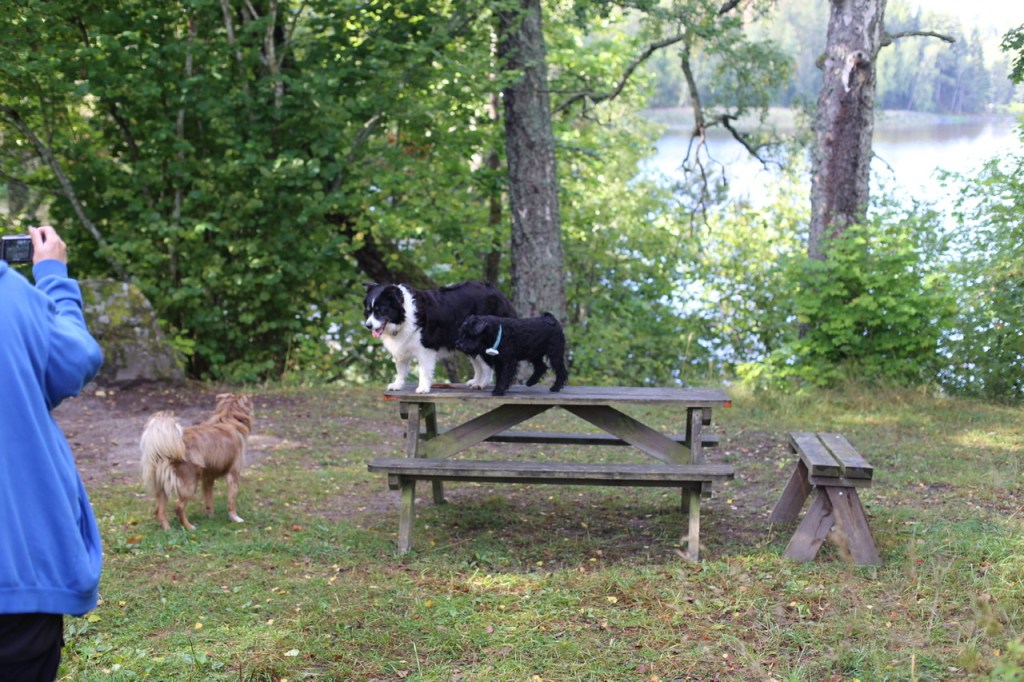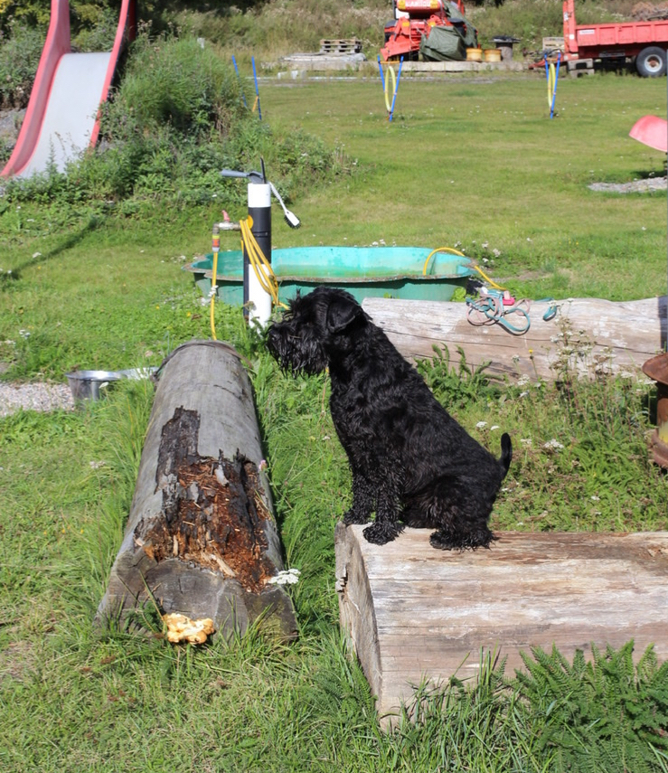 Troy håller koll på omgivningen. Vi är på Klovsten för att fixa lite inför hösten. Hundpoolen skall tömmas och sen skall vi göra något skoj säger M och Wilmamatte Helena.