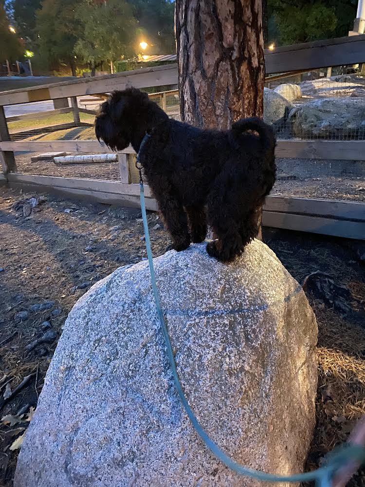 Toppen nu är vi på Trollön det är väldigt trevligt där. Vi springer fritt men måste hela tiden hålla koll på var tvåbeningarna håller hus.