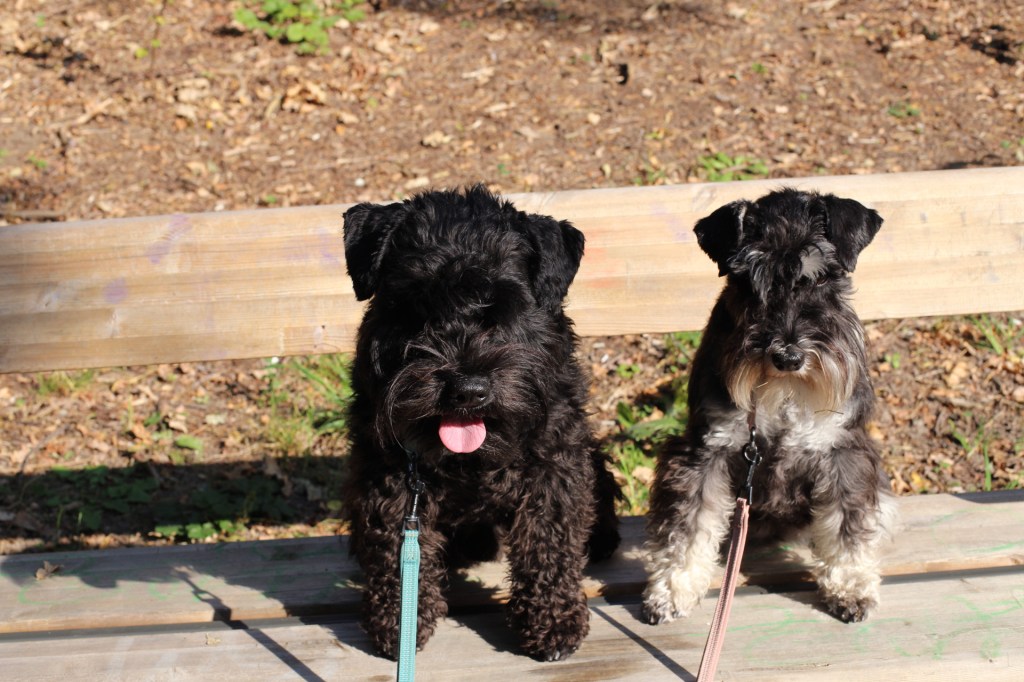 Härligt väder faktiskt ganska varmt i solens nästan 20˚. Vi hoppar upp på bänken och kräver godis, det är inte förhandlingsbart!