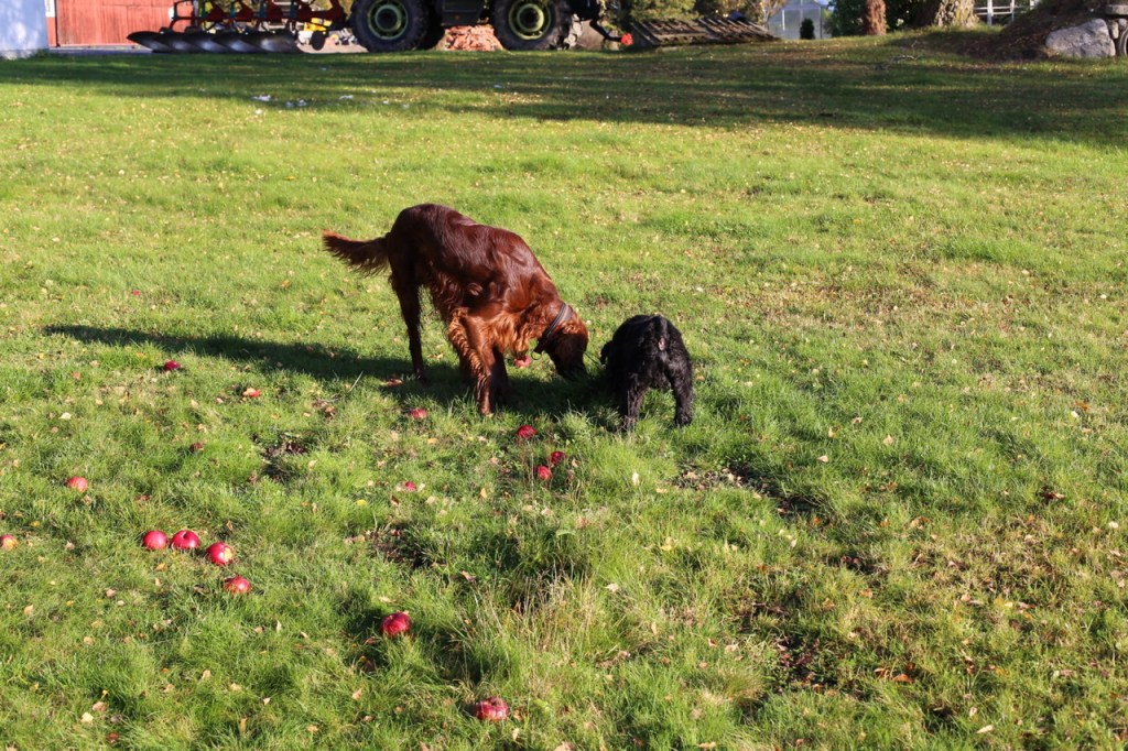 I huset bor också Messi och tvärs över gården Harald och Elton. Alla är vi vänliga mot varandra och hälsar glatt när vi möts. Det händer att det lönar sig att hälsa på tvåbeningarna också!