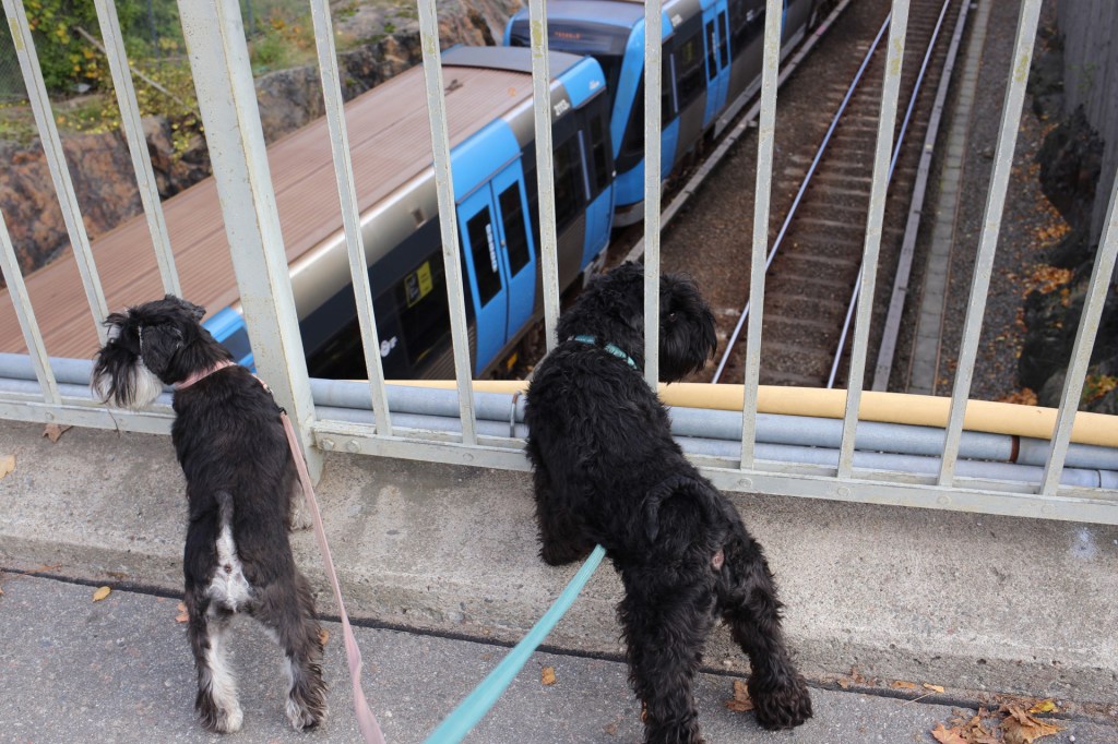 När vi hör tåget komma springer vi fram till staketet för att kolla på det. Jag har åkt med. H&M för länge sen men Troy har aldrig gjort det. När Corona är över skall vi ta en tur säger M.