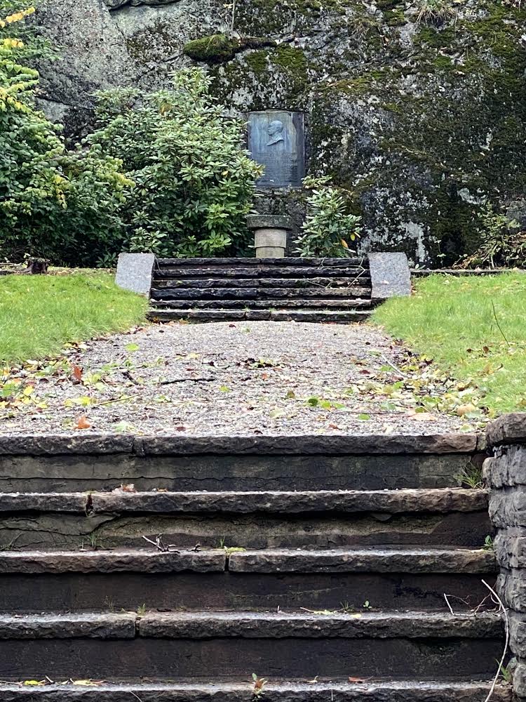 Nere i Vinterviken på bergssidan mot Aspudden finns ett minnesmärke med Alfred Nobels profil.