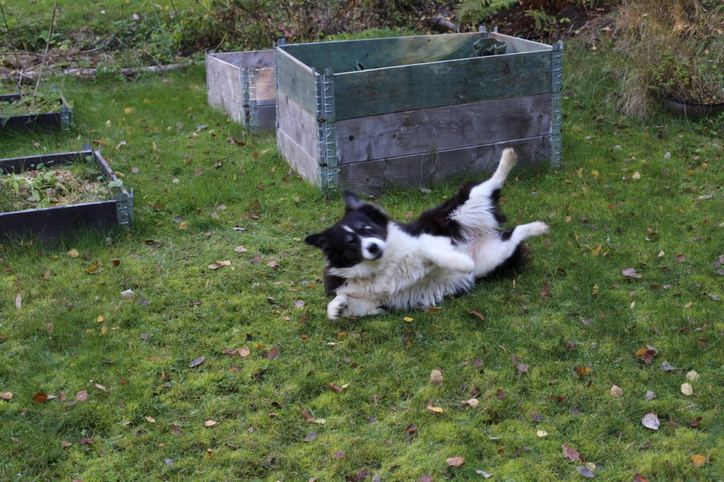 Wilma passade på att ta sig ett sent höstrull i det fuktiga svala gräset.