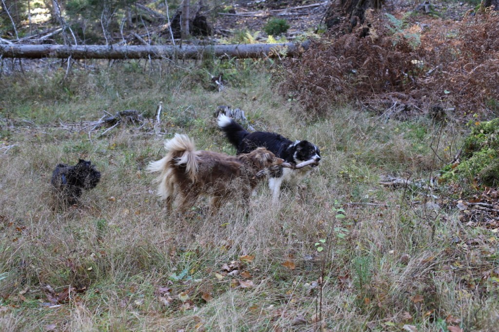 Wilma och Basse delade på en väldigt fin pinne, Troy fick nöja sig med att titta på.