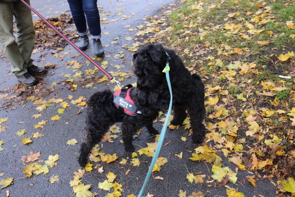 Vi mötte en kille på 15 månader som heter Boris. Det är kul att möta ”kusiner” och han var väldigt lik Troy. Samma storlek, riktigt svart och samma tjocka päls. Troy och Boris mätte lite krafter en stund men avslutade med ett slags gentleman agreement. Mattarna stod och snackade lite pälsvård ett helt onödigt samtalsämne om du frågar mig.