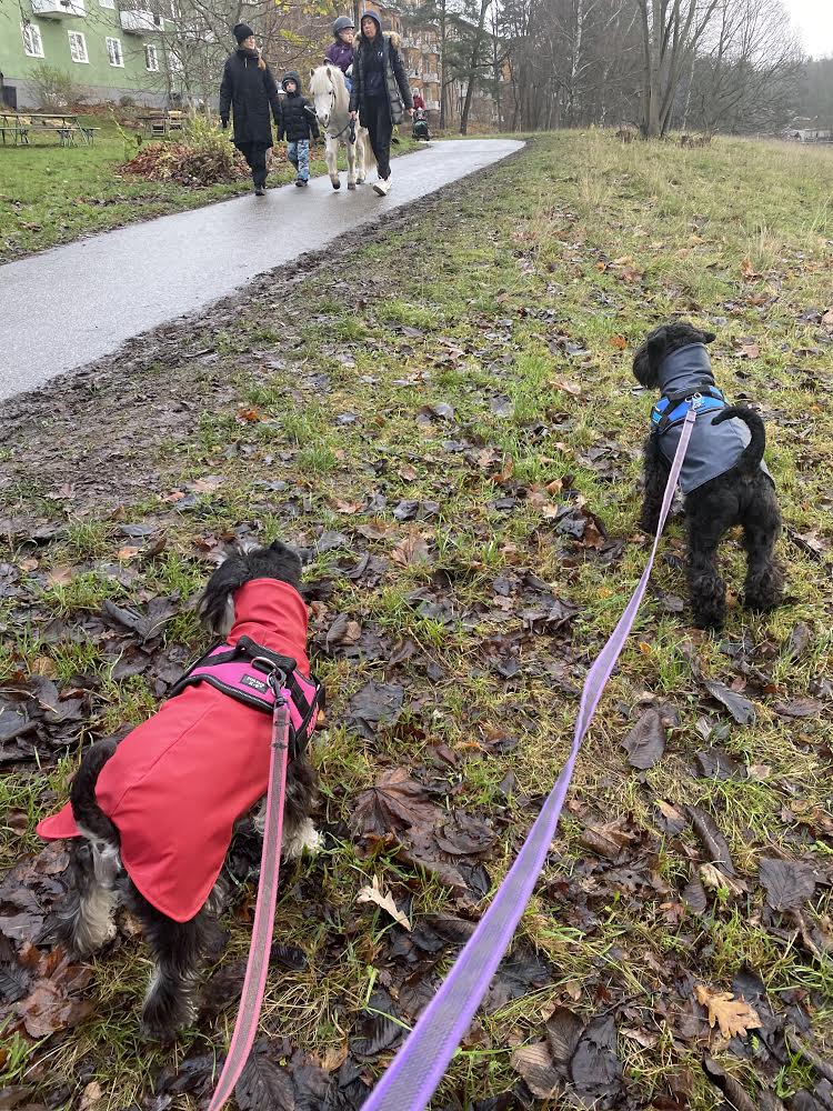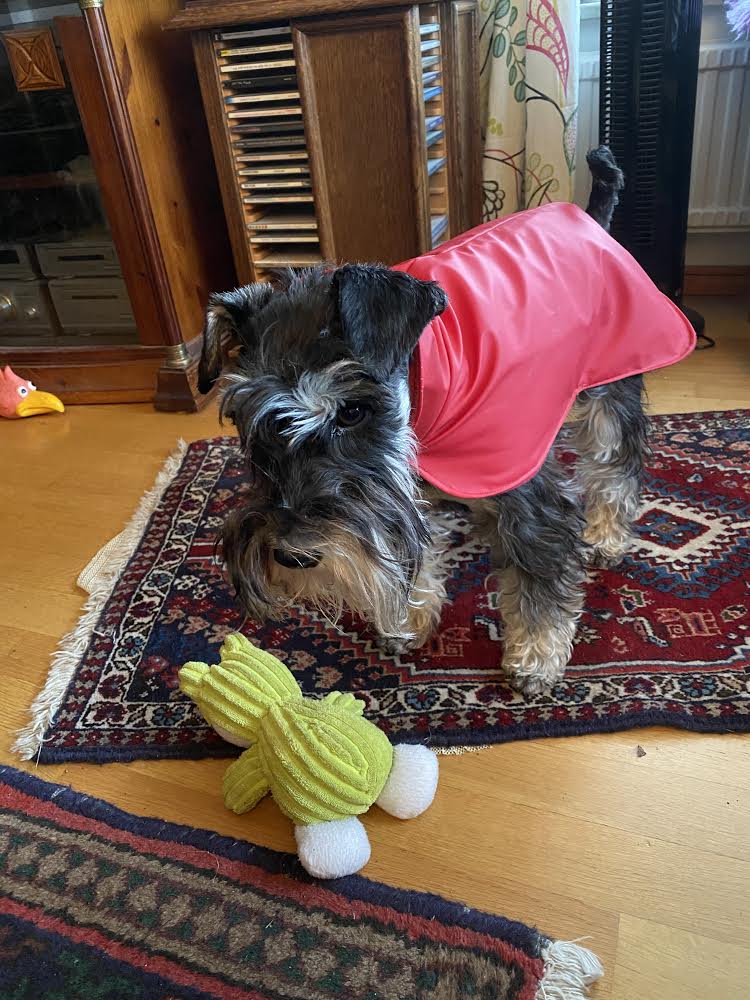 Så kom de där förbenade regnrockarna fram! Jag han inte undan, hon den där matte smyger med dem! Jaha det snöar och…. vad har det med regnrockar att göra, jag bara undrar!