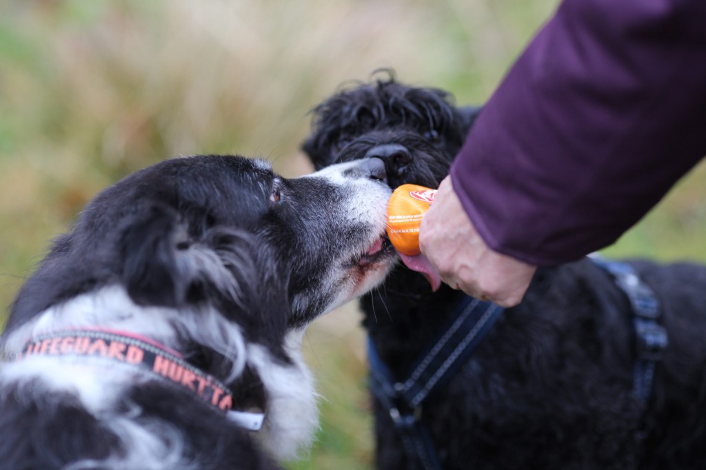 Energipåfyllning, ost i tub är riktigt gott. Vi delar broderligt på det som bjuds!