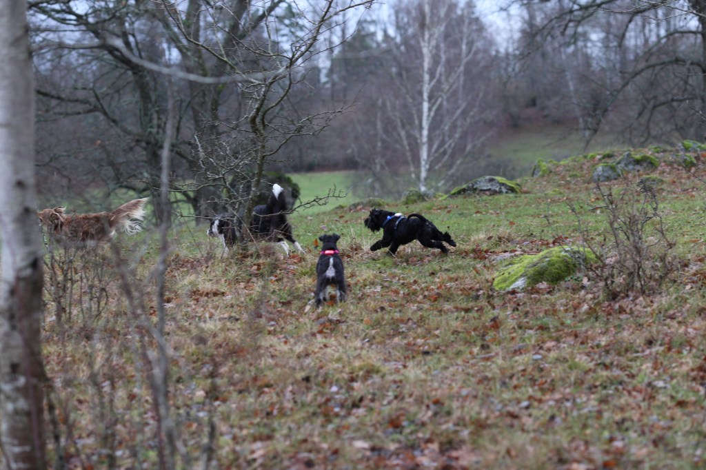 Äntligen, äntligen på fria tassar. Kom igen, nu kutar vi!