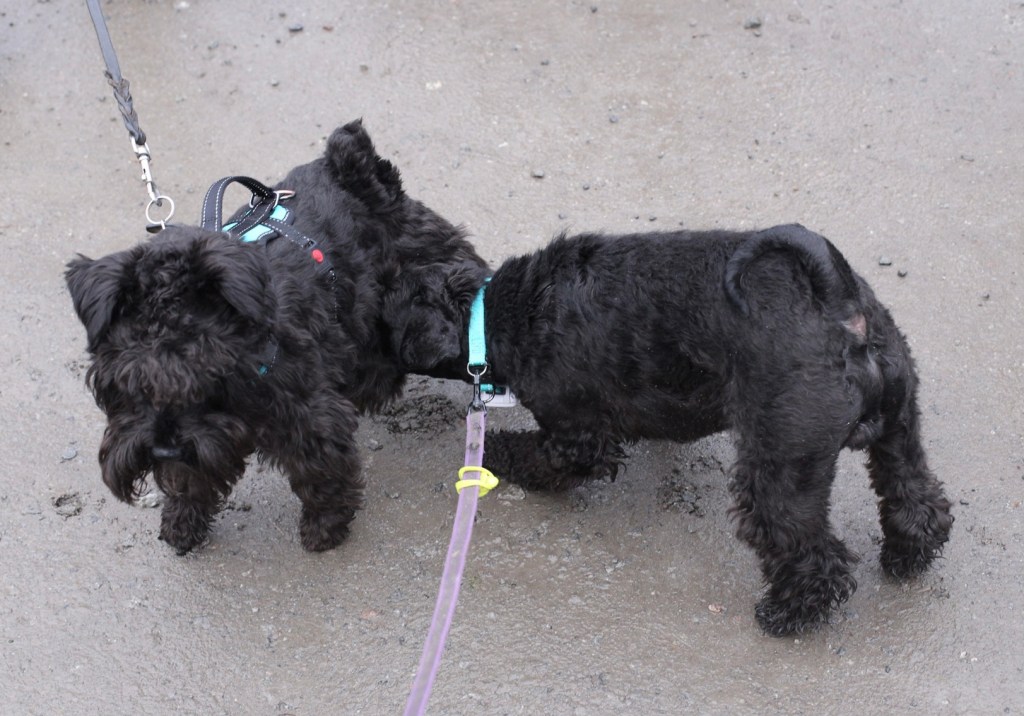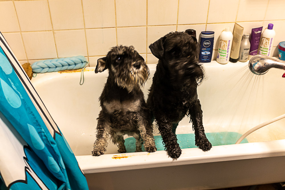 Att en sån härlig träff kan sluta så illa. Matte säger oj oj oj så svart vatten det blev av er lortgrisar. Nå ja det blev inte helbad utan det stannade vid tassdusch.