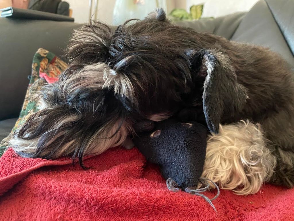 Man blir väldigt trött av att leta boll så jag hämtade råttis och tog mig en liten vilopaus med honom.