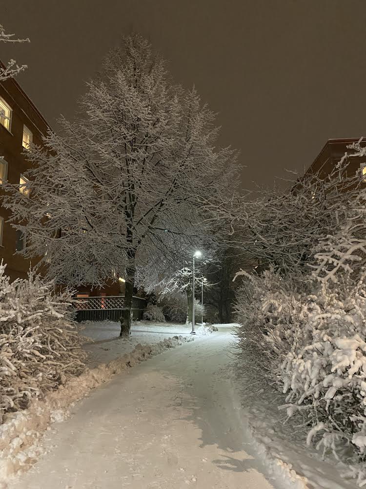 Allt ser ut som ett julkort, väldigt vackert faktiskt. Nu skall det bli kallt och då ligger snön kvar.