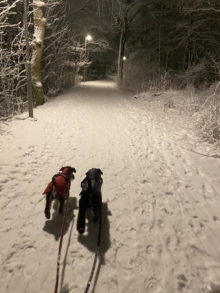 Snö snö och mer snö. Vi travar på så gott det går. Svårt med att kolla av alla dofter när de fryser till is