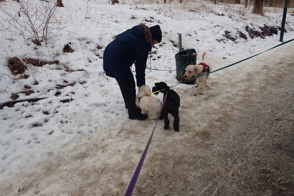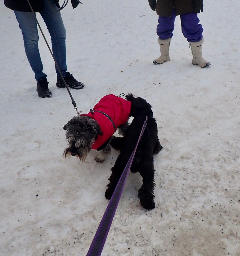 Troy in sitt esse Scilla är en stor kärlek. Sen kom det en liten tjej som jag inte vet vad hon heter. Scillas matte hade godis och då gäller det att hålla sig framme. Jag satsar på att tigga av matte.