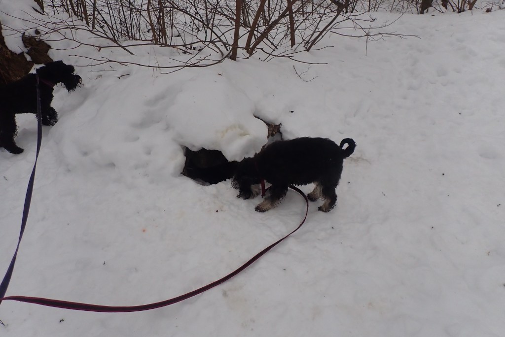 Troy tycker att det är väldigt bra med snövallar han vill gärna springa uppe på dem. Därifrån har han bra utsikt om i fall det skulle komma någon tjusig brud.