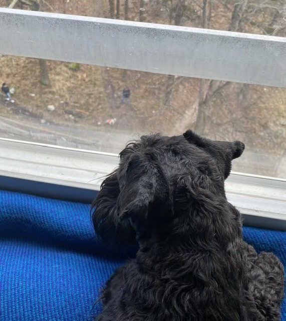 Hörni hallå hallåååå! Vad gör ni i min lilla skog sa Troy. Den lilla vresiga tiken är ju där, jag måste nog ut till henne för att erbjuda mitt beskydd. Trams sa matte den tiken klarar sig själv. Matt upptäckte naturligtvis ett vitt strå i pälsen i nacken som hon prompt skulle ha bort, trams säger jag.