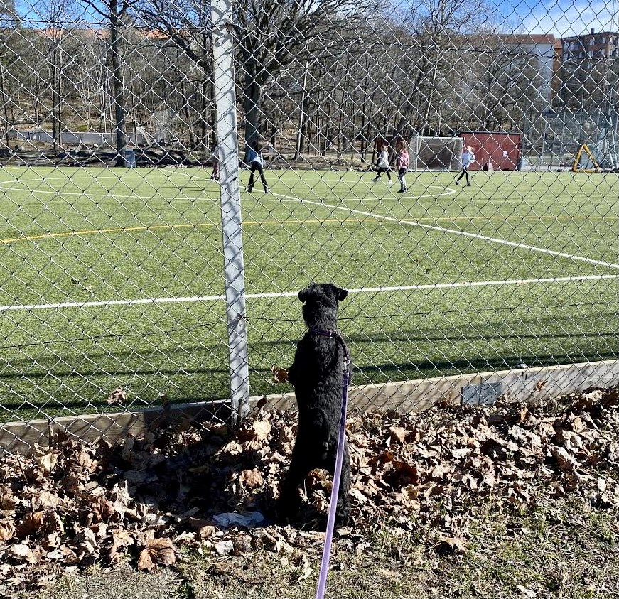 Troy säger matte de spelar fotboll kan inte jag få vara med? Nä tyvärr lilla älsklingen det går inte säger matte, de skulle inte ha en chans mot dig!