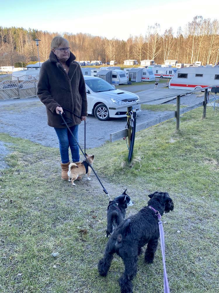 Tillbaka på campingen där mötte vi två gamla bekanta Bosse och Bertil. Jag försöker få fart på dem genom att retas lite och bjuda in till lek. Trots att solen lyser är det ganska kallt.