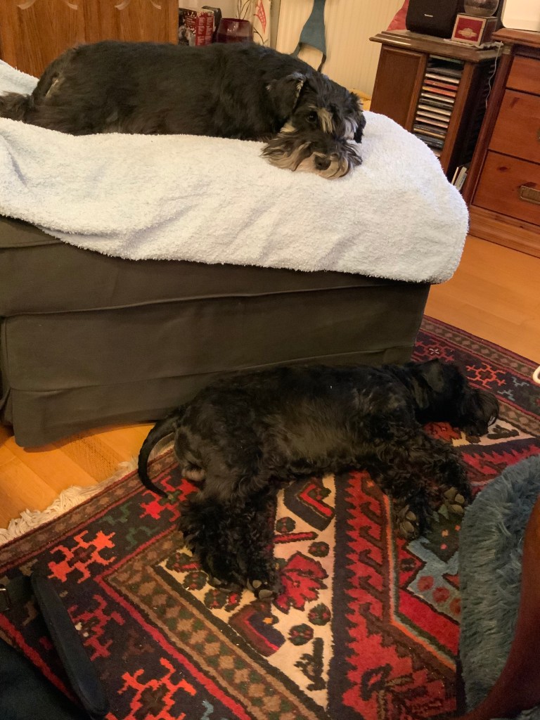 Sitter på min favoritplats varifrån jag har full koll på campingen. Matte sitter bredvid inom nåbart håll så jag kan krafsa lite på henne så jag kan få lite ryggkli. Matte påstår att jag är en liten lurvitutt och så kan inte prinsessan av Aspudden-Örnsberg se ut, särskilt inte nu när Jannica har frisserat Troy. När vi kommer hem till stan väntar ett par pass på trimbordet inklusive ett bad.