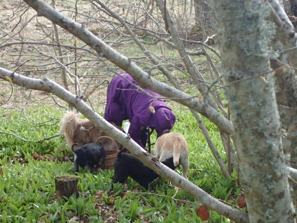 Jag, basse och Alice måste kolla vad matte gör, vad är det hon plockar och lägger i kogen, jasså ramslök det är inget för oss. Troy var mer intresserad av Alice akterdel än av att kolla vad matte gjorde.