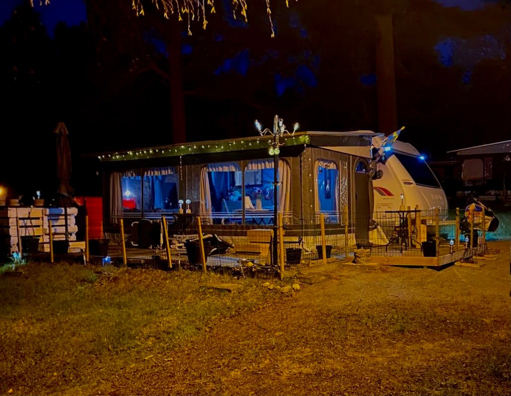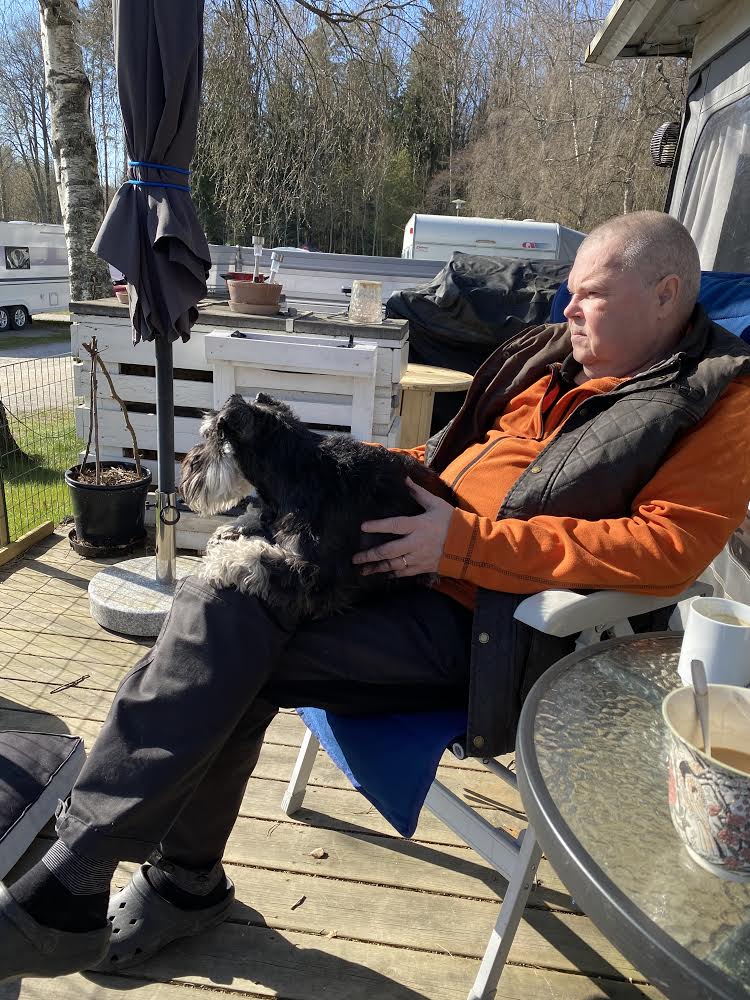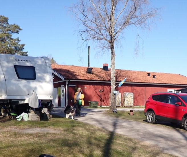 Idag 1 maj startar sommarsäsongen för campingens långliggare. Det kommer många vagnar och de har mycket jobb med trallgolv och förtält. Troy ligger och kollar så att allt går rätt till.