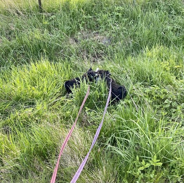 Troy har så mycket spring i kroppen och matte säger att han kan inte gå, han måste springa! Han gör kortare utflykter åt sidorna men kommer hela tiden tillbaka, mest för att kolla vad matte är. Då får han beröm och efter det bär det iväg in i skogen med Basse. Det blir mycket bada i de vattenfyllda dikena.
