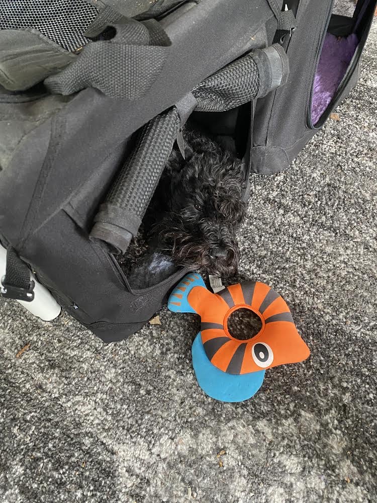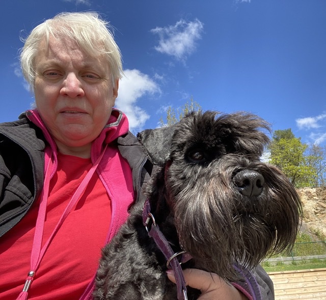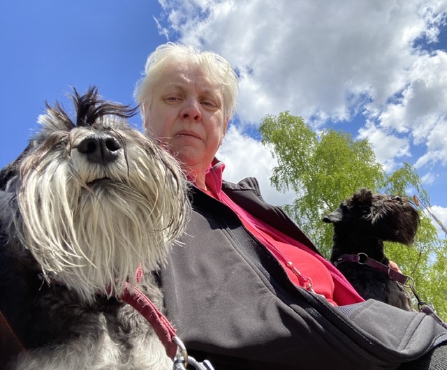 På ångbåtsbryggan stannar vi en stund och tar varsin selfi som matte får vara med på! Vi sitter ett tag och solar oss, det är väldigt skönt.