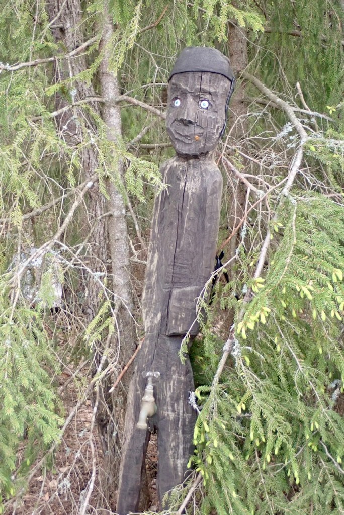 Som jag sagt tidigare det finns många konstiga saker i skogen om man har ögon att se med. Dold inne bland några granar stod Pip-Johan och lurade! Man kan undra vad som kommer ur den pipen?