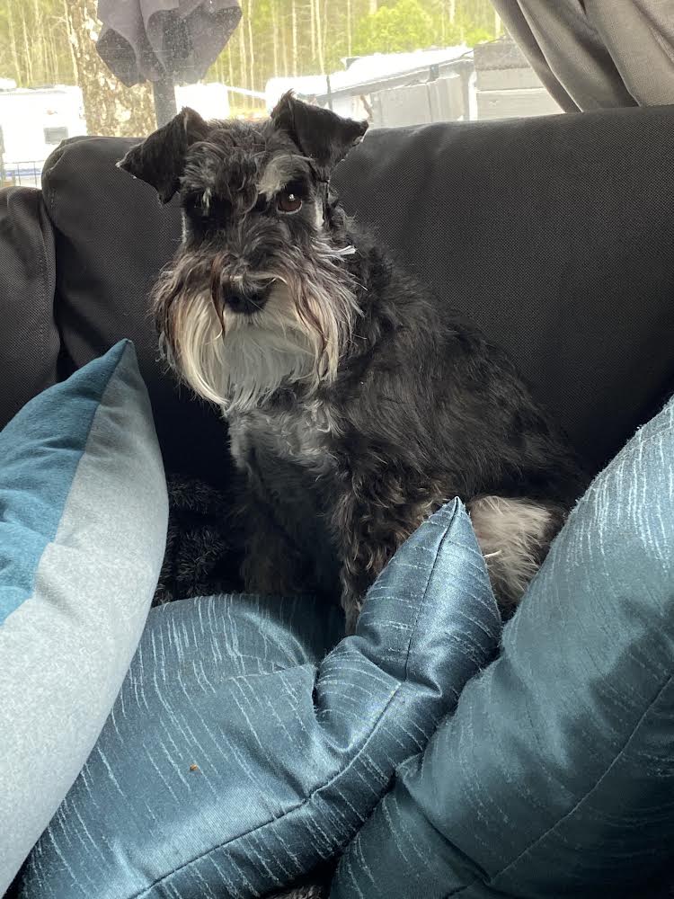 Troy har krupit in i kojan och njuter av värmen från kaminen som står en bit ifrån. Han kommer inte ens ut för att tigga när H&M äter lunch. Det kan jag säga att det hör inte vanligheterna för han är jämt hungrig!