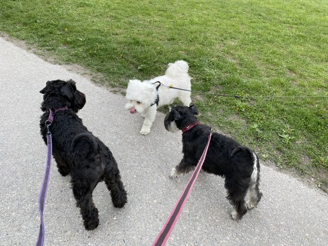 På promenad hemma i stan. Vi möter en bekant kille vid namn Viktor. Det var ett tag sen vi sågs men det är alltid kul att träffa honom. Mattarna stannar och pratar en lite stund.