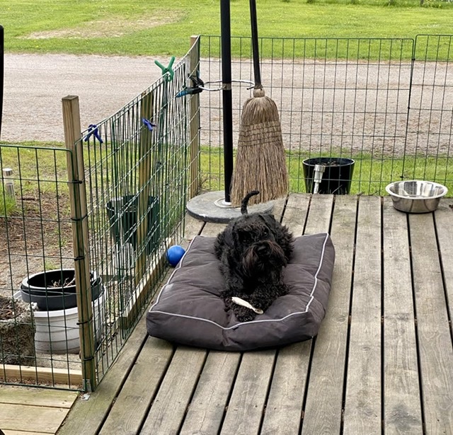 Wilma den kloka och lugna ”leading lady” har övervakat allt spektakel och behövde inte ingripa! Hon har ett underbart oändligt tålamod med Troy och Basse! Jag ger Troy lite spö då och då . Det är ju bara min plikt som fostermamman och storasyster.