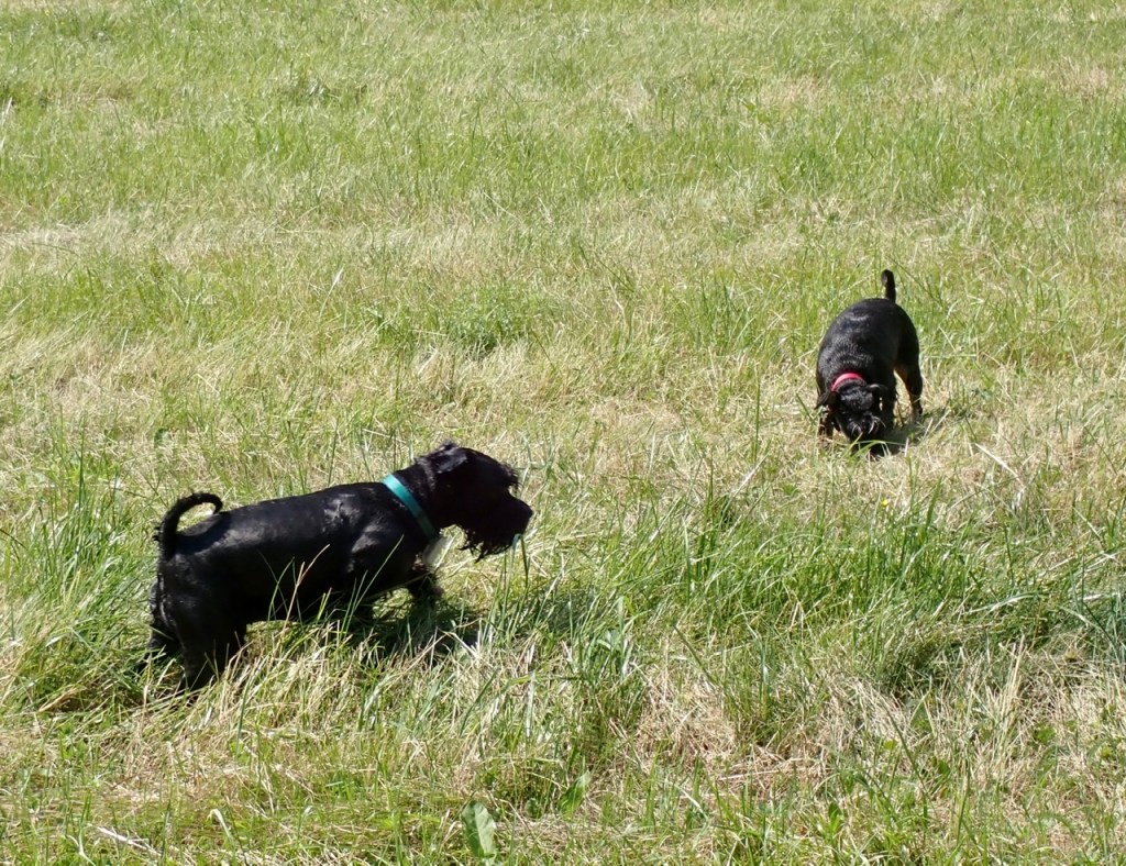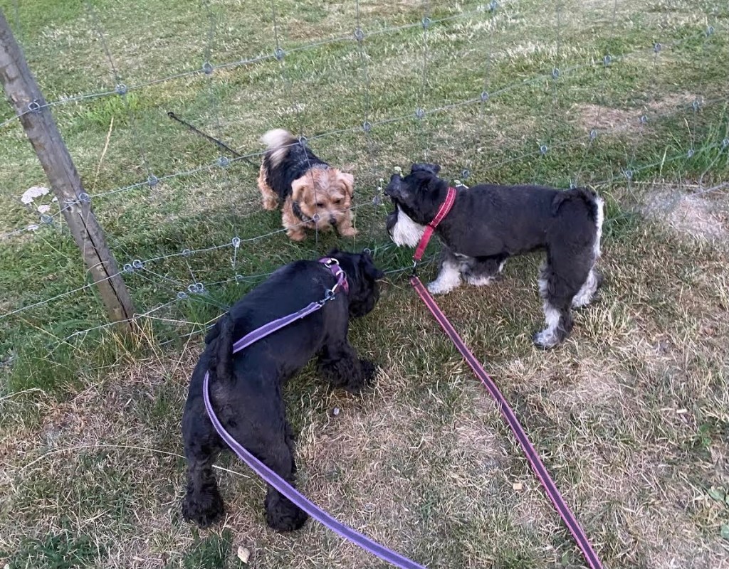 På nattpinket gick vi utanför campingens staket och plötsligt kom en terriertjej kutandes med kopplet hängande efter sig. Vi stod en stund och snackade med henne, hon var en juste brud. Troy blev väldigt förtjust i henne och hon i honom. Efter ett tag kom hennes matte och så blev hon koppelfånge. De hade inte märkt att hon stack iväg från husvagnen, det tog en liten stund innan de saknade henne. Matten var glad att vi kom och att hon stannade hos oss.