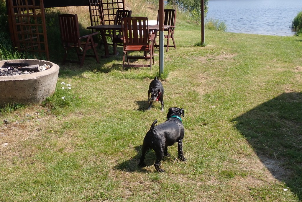 Nu va. Nu är det jag som har pinnen och den skall inte i sjön igen. Nu skall jag tugga lite på den.