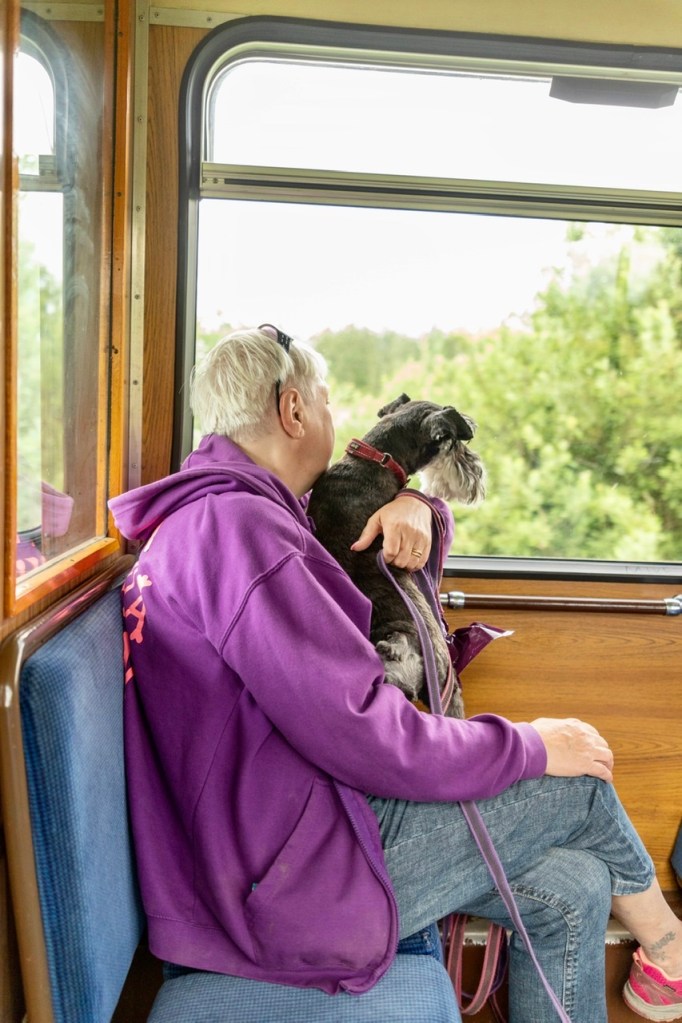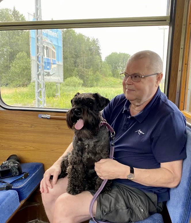 Troy var lite tveksam först och hade inget emot att sitta i husses knä. När vi skulle starta från Hosjö för att åka till Malmköping för att äta glass startade inte vagnen. Men efter en avaktiverande och omstart fixade det sig och vi kom iväg.