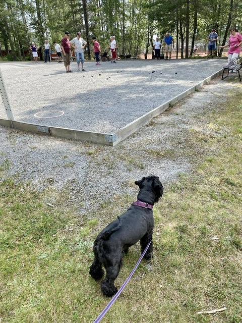 Efter en stund fortsatte vi och försökte hålla oss i skuggan! Troy måste inspektera bouletävlingen som pågick.