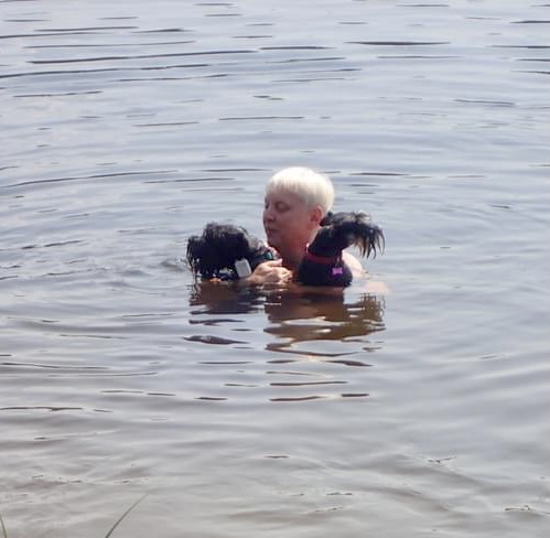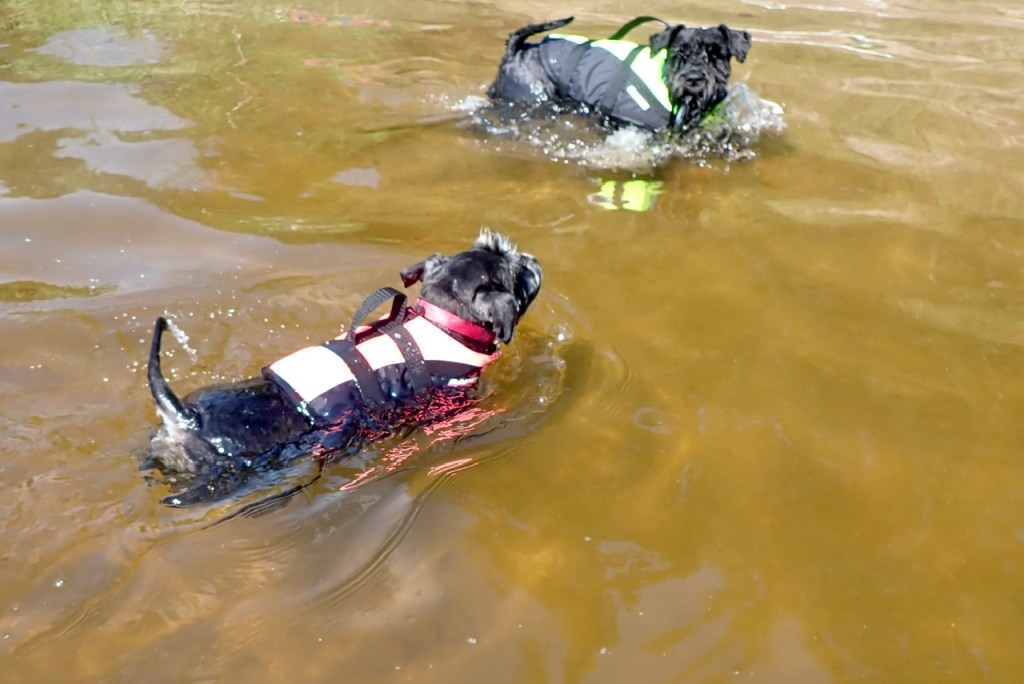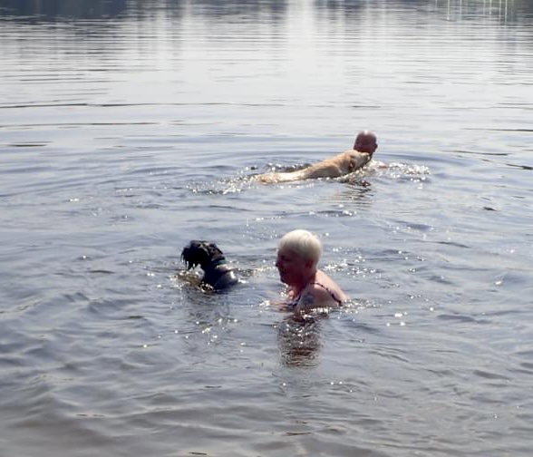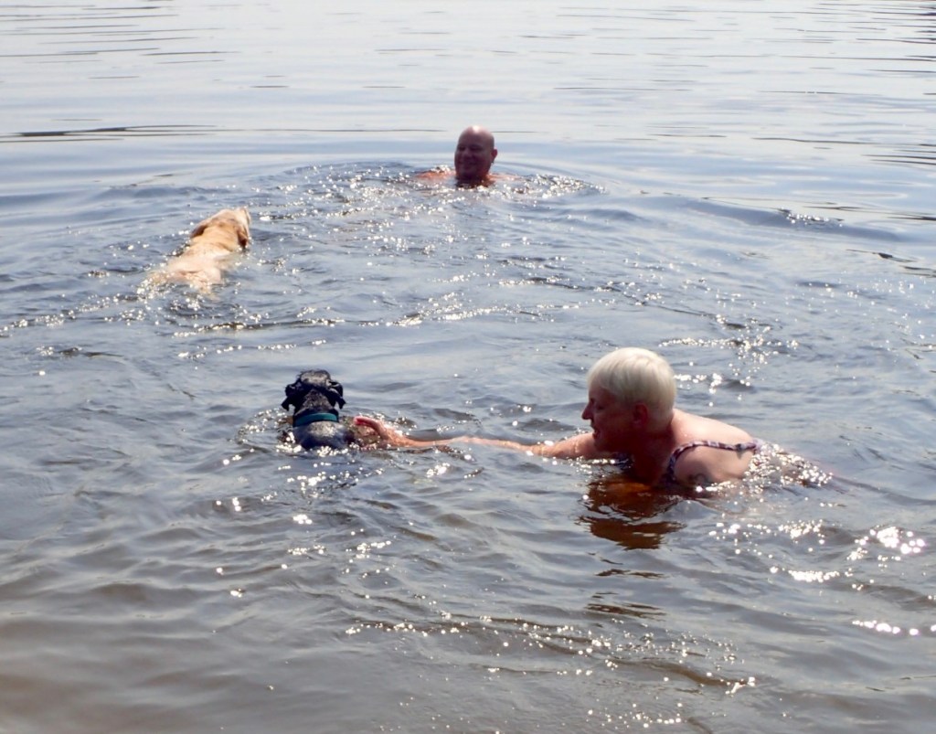 Så var det dags för bad igen matte hoppade i spat. Alice simmade till sin husse och Troy var på väg till dem. Matte ryckte att Troy inte skulle simma så långt ut så hon fångade in honom