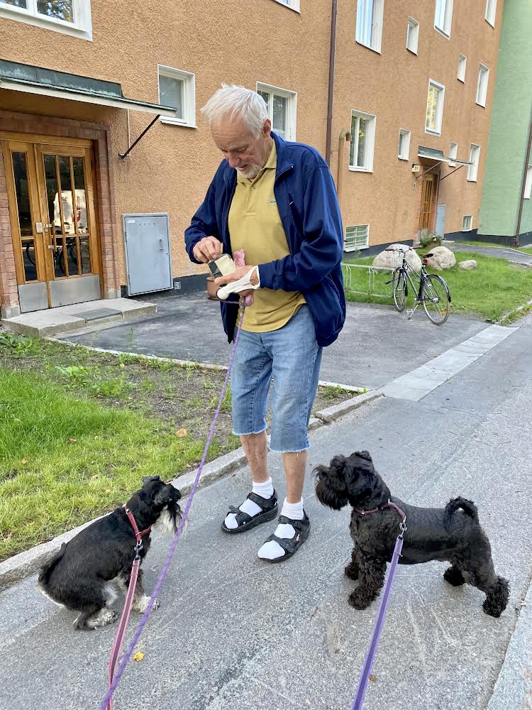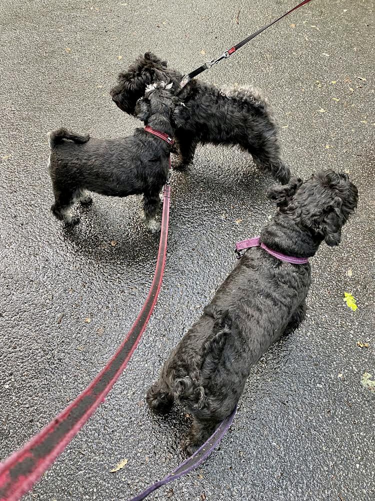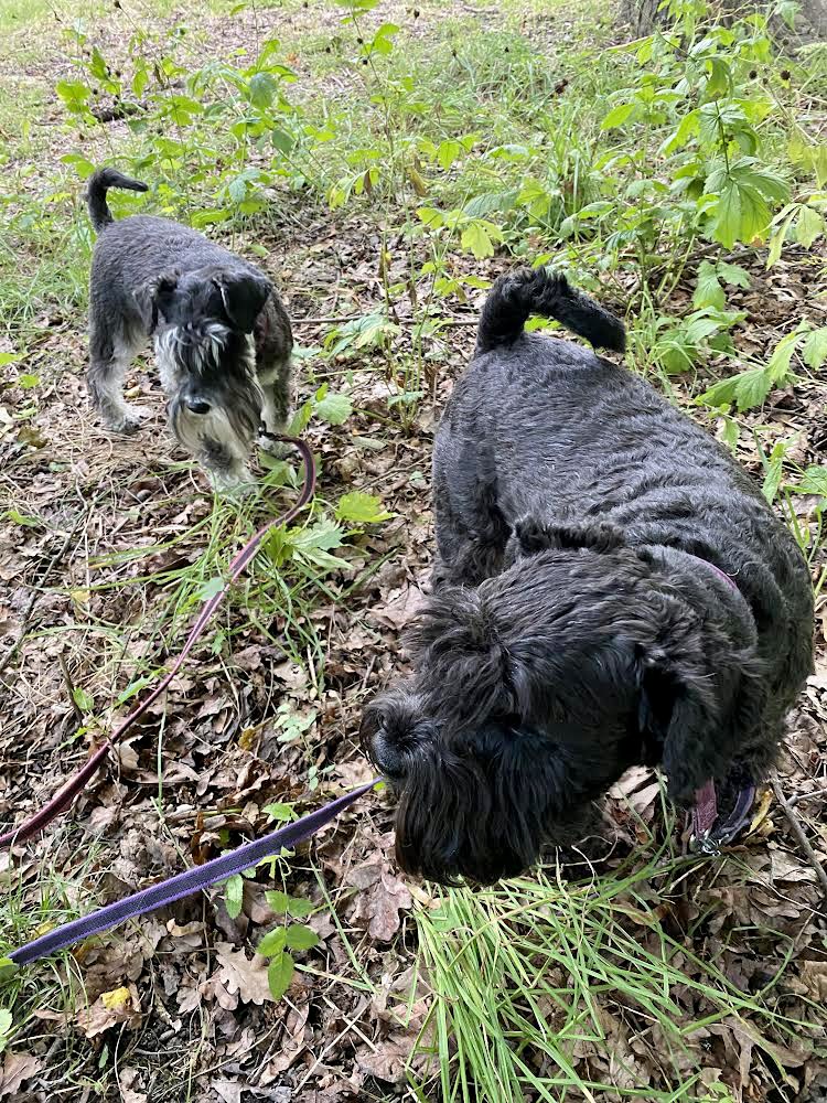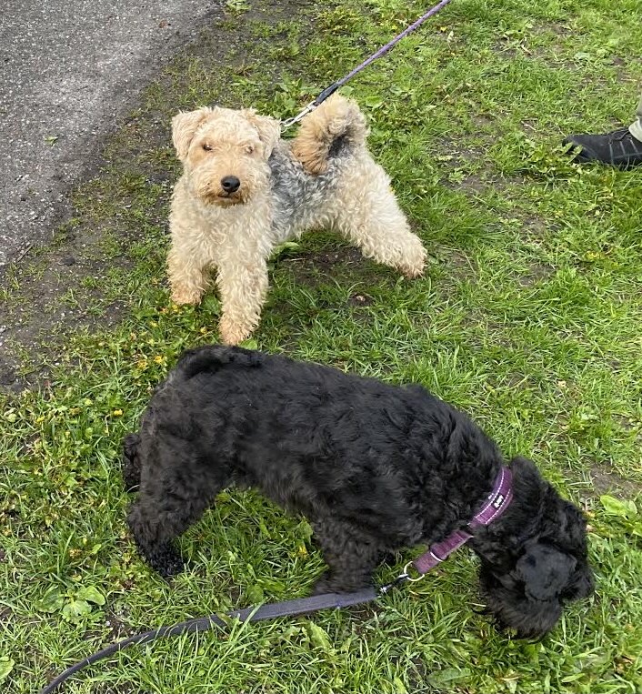 På morgonturen mötte vi vår kompis Esset. Han är av rasen Welsh terrier och är jämgammal med Troy. Vi gjorde sällskap, vi har samma rutt för morgonbestyren.