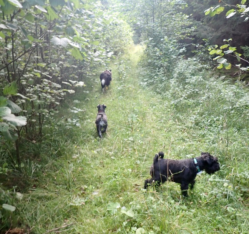 På fm turen han vi knappt ut innan det började regna ordentligt. Vi sökte skydd under ett hasselsnår tills det gått över. Vi har lärt oss att söka skydd under buskar med mycket löv när det börjar regna. Vi klarade oss väldigt bra vi var i princip torra. Men vi mötte några som såg lite dränkta ut.
