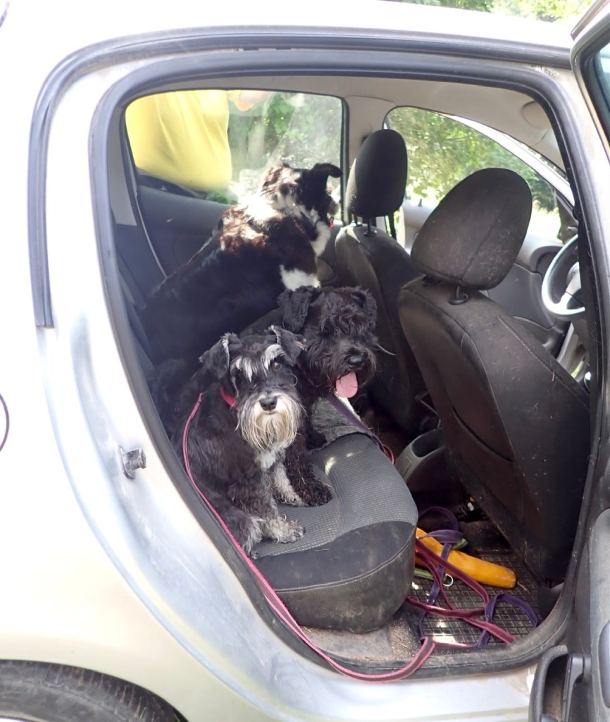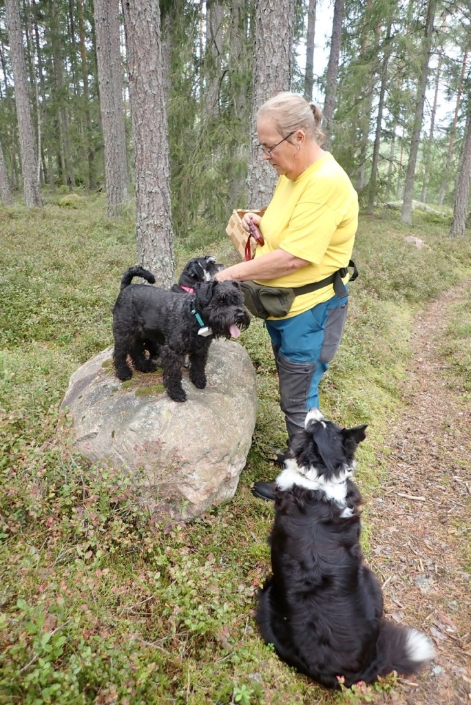Ett stycke hundrataxi kom till oss! Jippi det är Helena med Wilma men utan Basse. Vi knör in oss alla i bilen för husse har lånat min bil för han skall åka till Mariefred för att träffa några kompisar där.