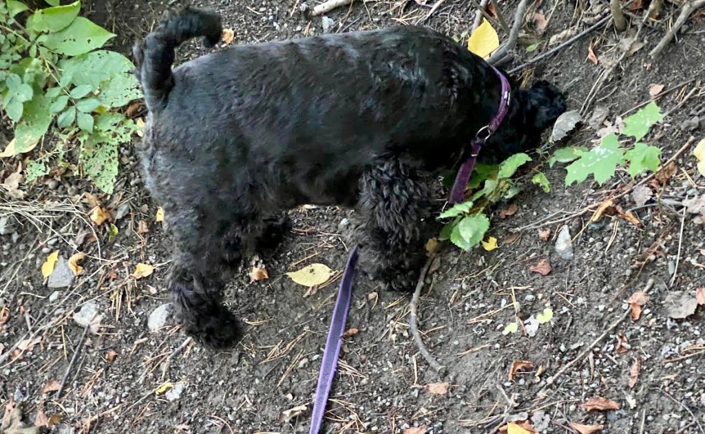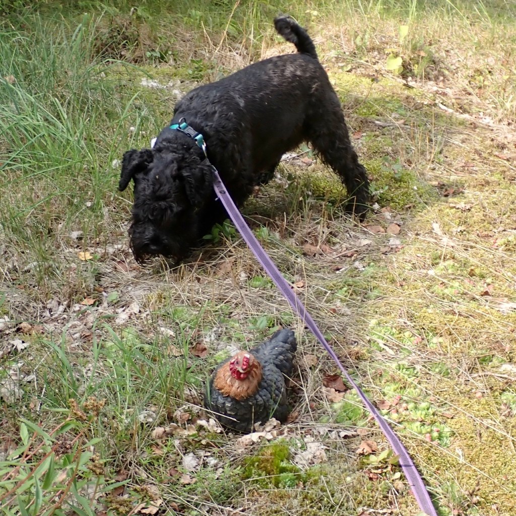 När vi nästan var framme vid hundtaxin såg Troy något mycke farligt på marken. Han var väldigt försiktig och vågade inte riktigt enda fram. Hans dova morr brydde den sig inte alls om!