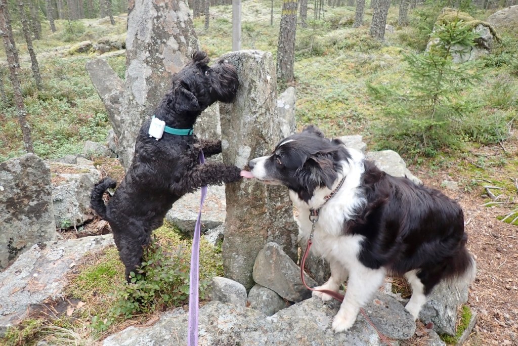 Jo… matte du undrade vart vi var på väg. Det var hit för här finns alltid ostklottar på stenarna. Vi smaskar på för det var gott om dem.