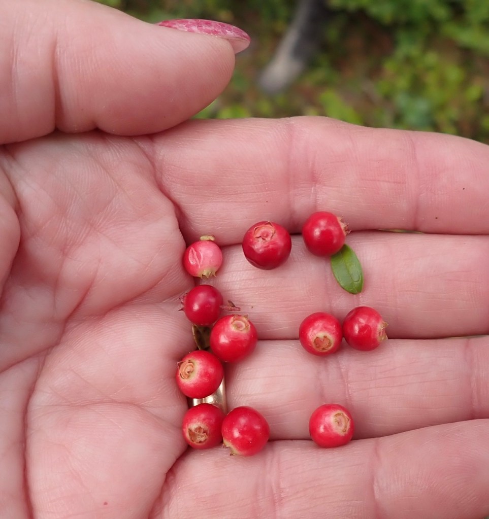 Aha utropar matte. Nu är de snart på G. Lite sol till och lingonen är klara för plockning.