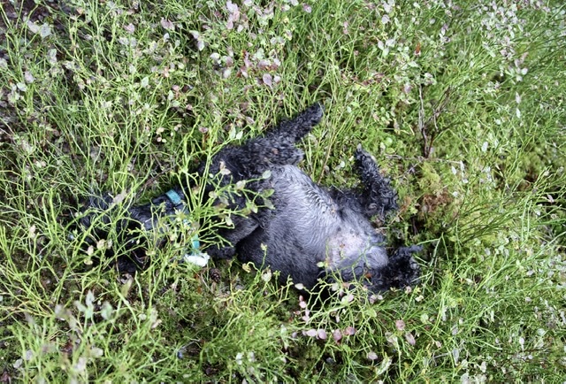 På väg till bilarna tog Troy sitt obligatoriska ryggrull denna gång i blåbärsriset