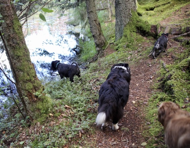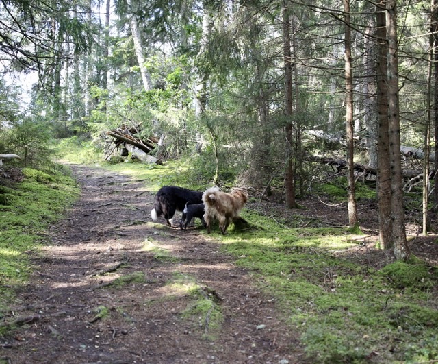 Efter ett tag kom vi in i skogen och vi fick va på fria tassar.